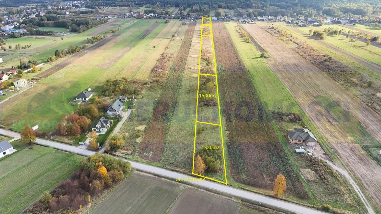 Szczegóły działek:od Dymińskiej I linia zabudowy 751/1 – 1320 m² (23x57m) cena 195 tys REZERWACJA