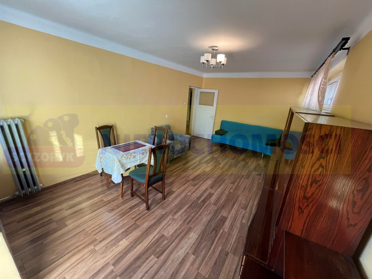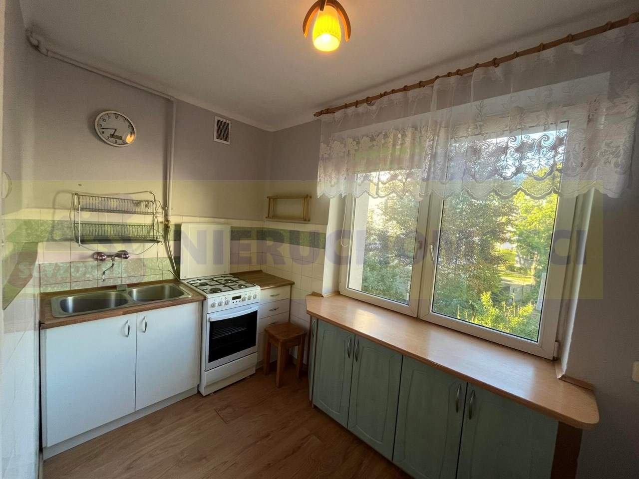 Na podłogach panele. Wymienione okna PCV.