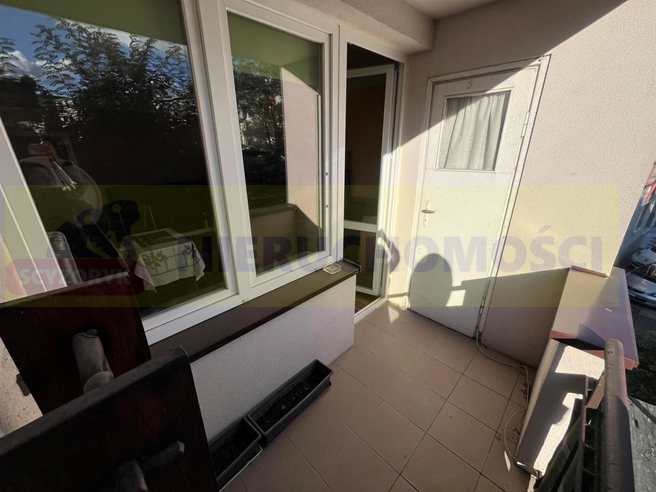 -Duzy balkon Loggia wyposażony w zabudowany regał